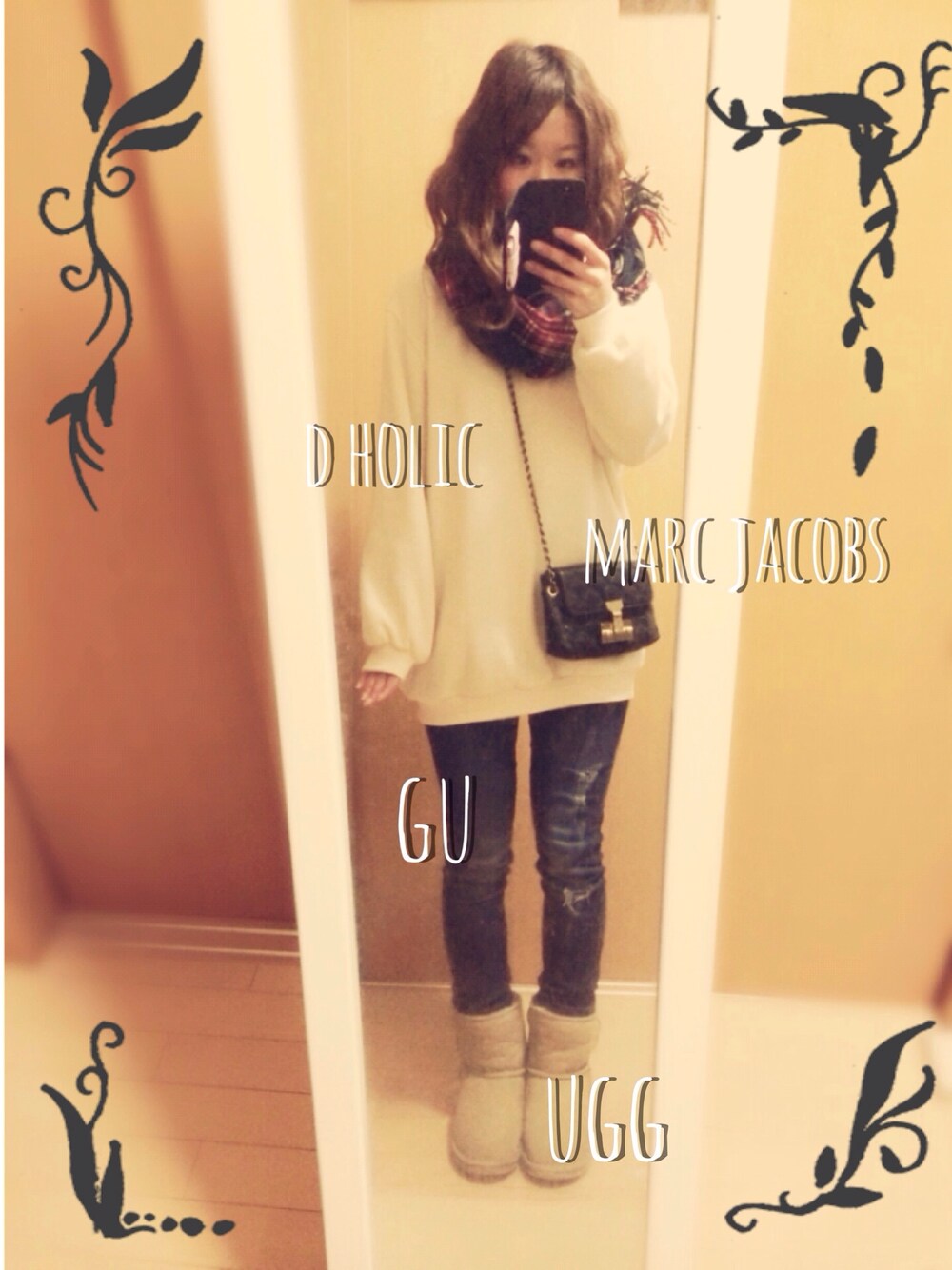ストール : ブランド不明 スウェット : D HOLIC デニム : GU ブーツ : UGG