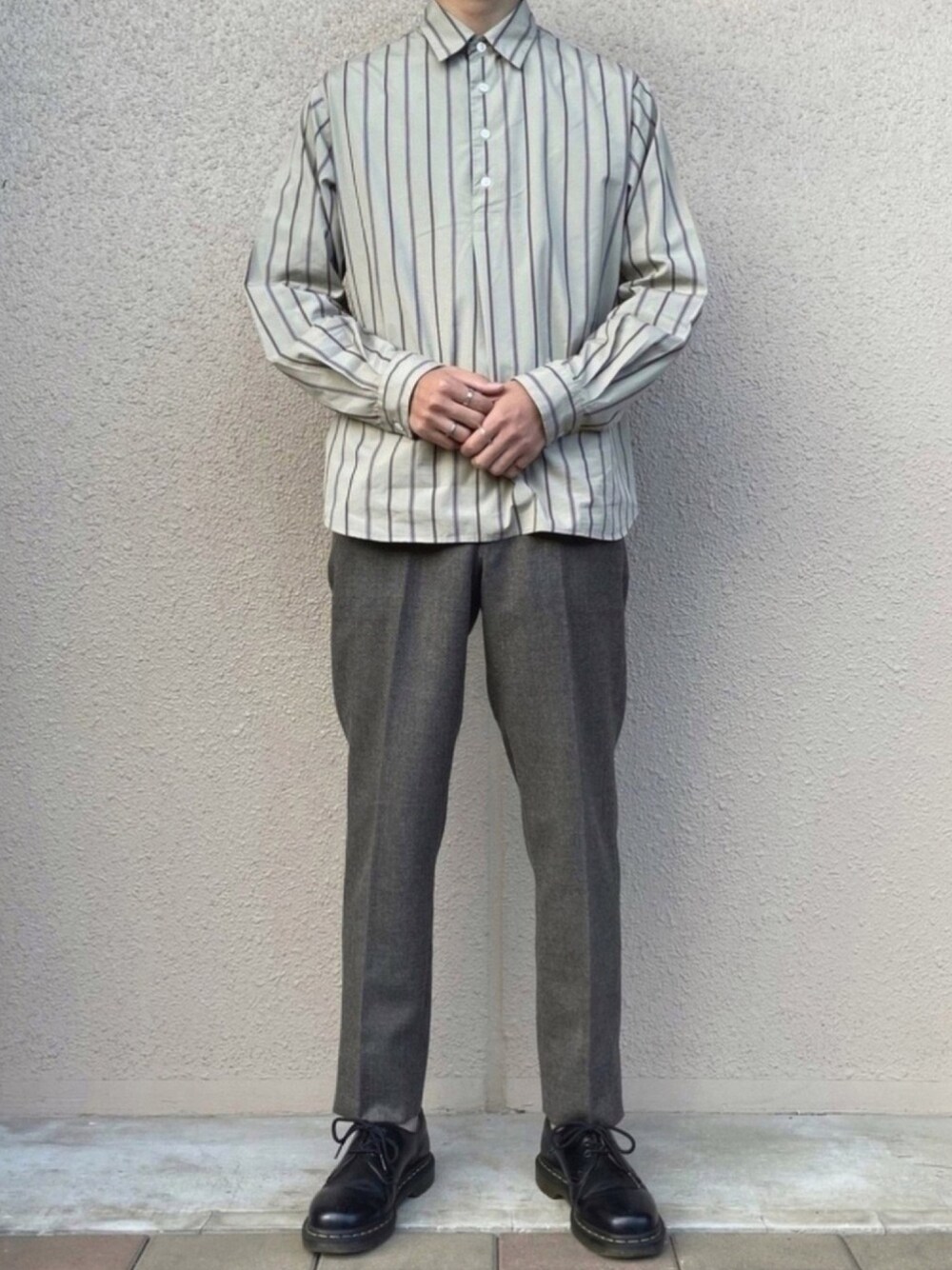 👕トップス steven alan ストライプ柄シャツ ベージュ Sサイズ 👖パンツ steven alan テーパードパンツ モカ Sサイズ 👟シューズ Dr.Martens 3ホール 8(26.0cm)