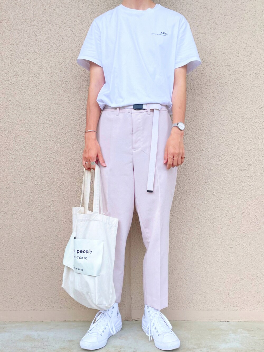・小さなロゴTって可愛い ㅤㅤㅤㅤㅤㅤㅤㅤㅤㅤㅤㅤㅤ 先日、4年記念日のプレゼントで貰ったA.P.C.のロゴTシャツ! 主張しすぎないロゴ入りのTシャツを選ぶあたり💯 ロゴが大きいとかえってコーデを 邪魔してしまう可能性もあるので個人的には着ないようにしてます! いつもいいね・お気に入りありがとうございます🙇🏻♂️ フォローしていただけたらとても嬉しいです! Instagramには今回着ているTシャツでディズニーに行った カップルコーデも載せています! @oryuryusan(りゅうじ/細身コーデ)で検索です🔍
