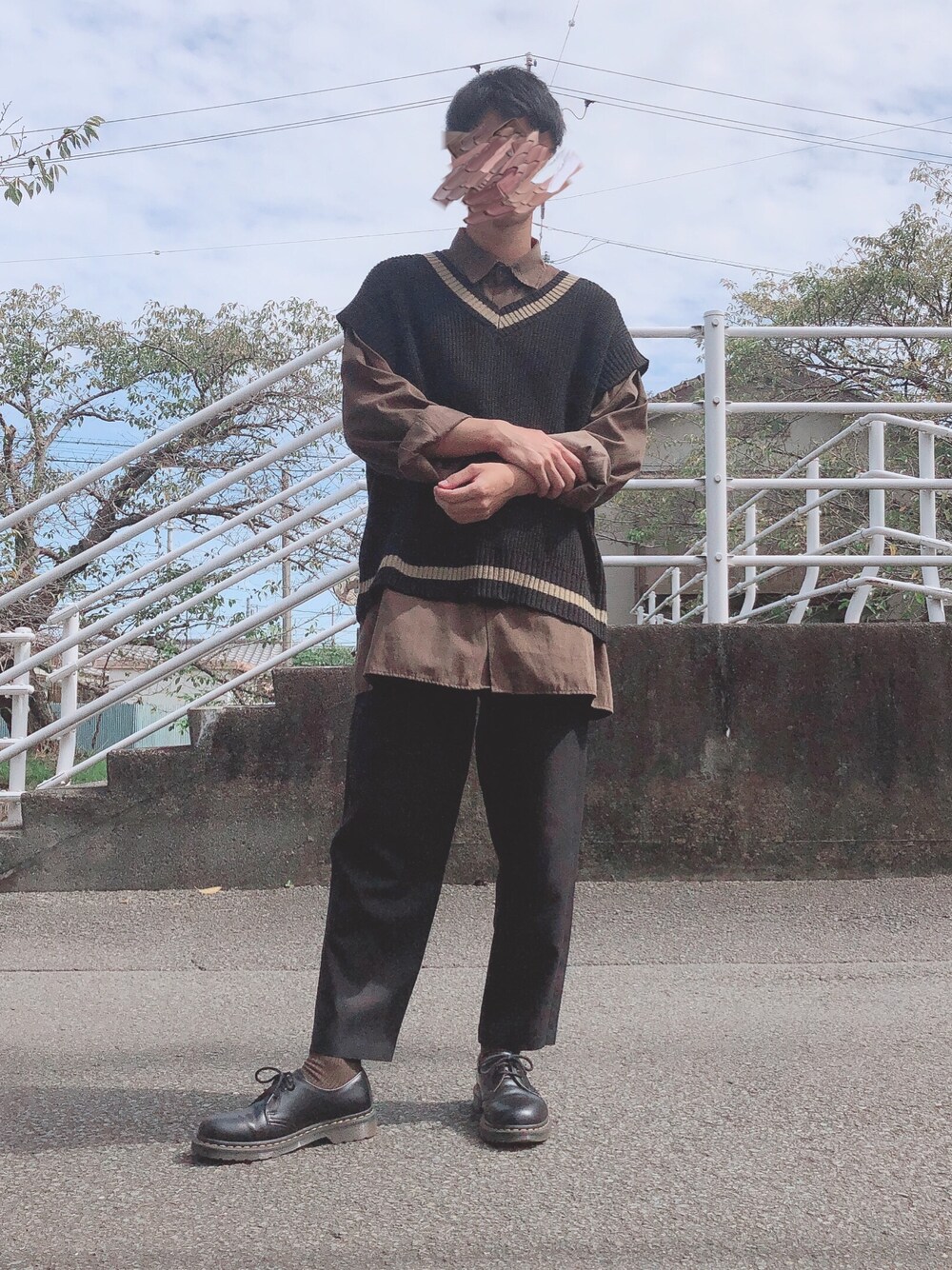 りゅうのベスト「Vネックニットベスト」を使ったコーディネート