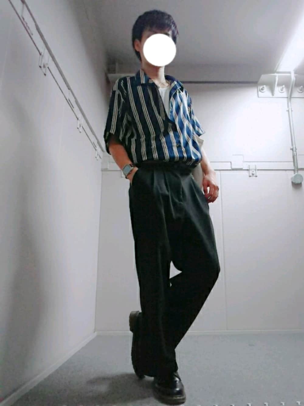 パンツ高めにはいて脚長く見える詐欺しましたごめんなさい 柄シャツのタックインでも黒のワイドパンツと合わせると綺麗めになります! 腰元のアクセサリーつけ忘れちゃったので少し寂しくなってしまった笑 時計は気分とコーデの合い方によって変えます!