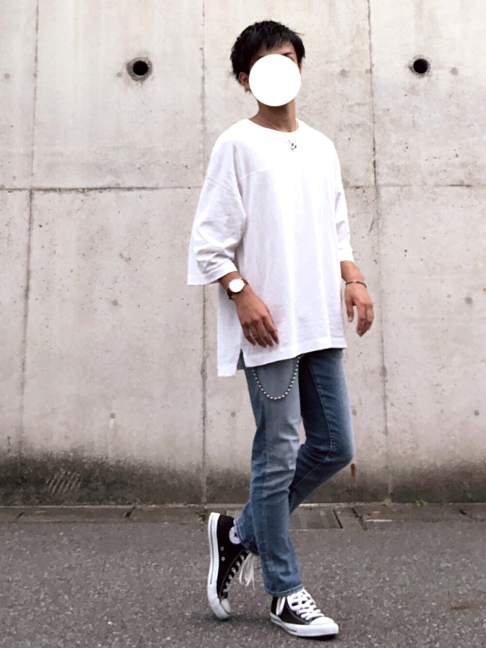 初ランクインしましたありがとうございます!!🙇♂️😭 暑かったので先日WEGOで買った七分袖の白Tを着ました! シンプルすぎてしまうのでアクセサリー多めで WEGOはちゃんとトレンド取り入れてくれるので好きです👍