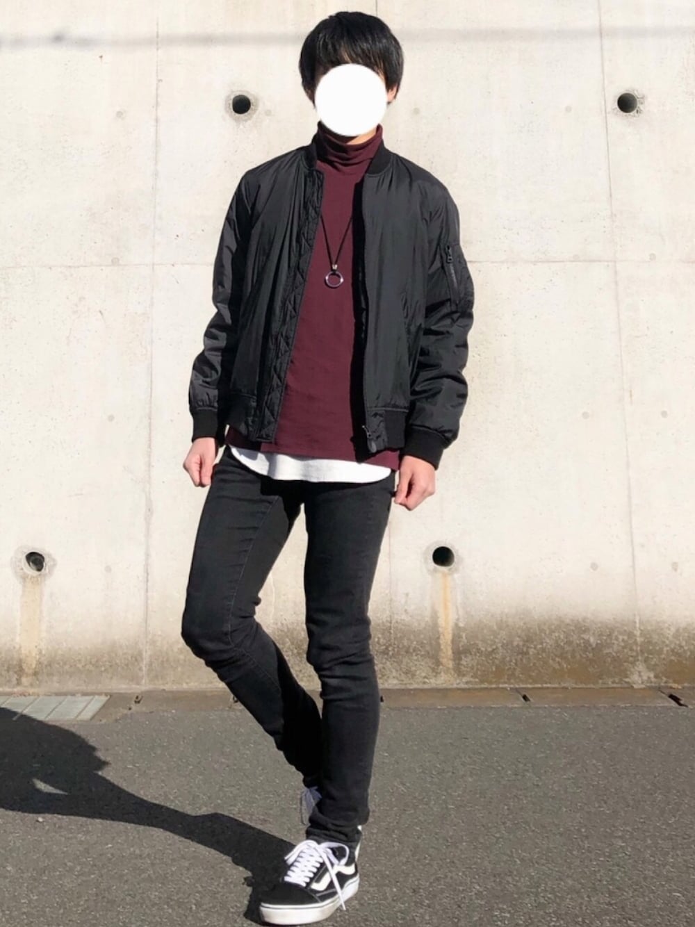 ワインレッドのタートルネックと、MA-1コーデ! MA-1はなんでも合うし、暖かいからトレンドじゃなくても大活躍してます
