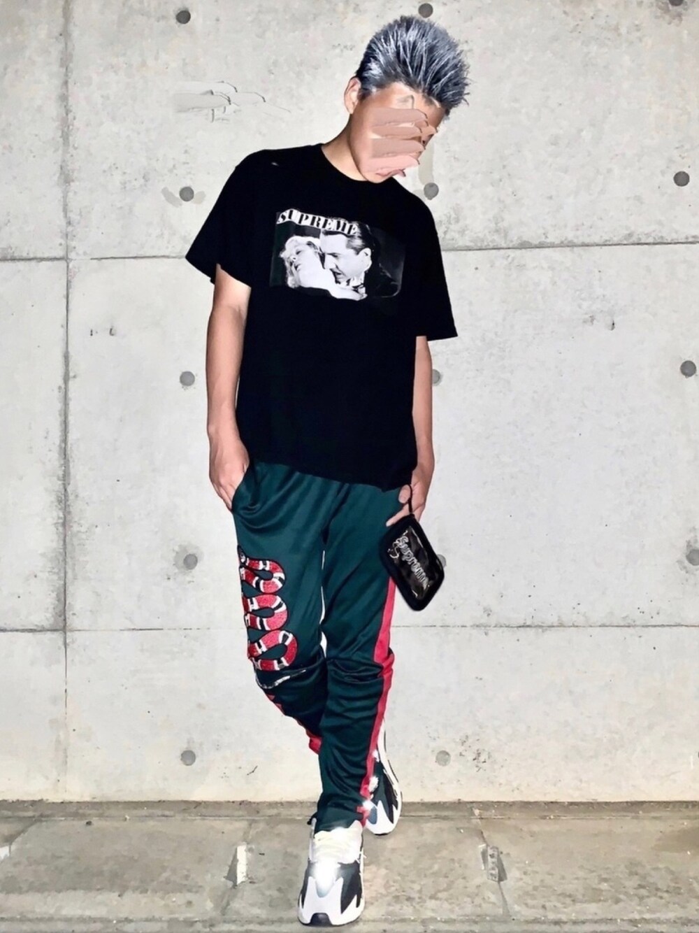 見ていただきありがとうございます😊 シルバーアッシュのヘアワックス買ったんで使ってみてました(笑) EPTMのトラックパンツとSupreme Teeにyeezy boost700です👌