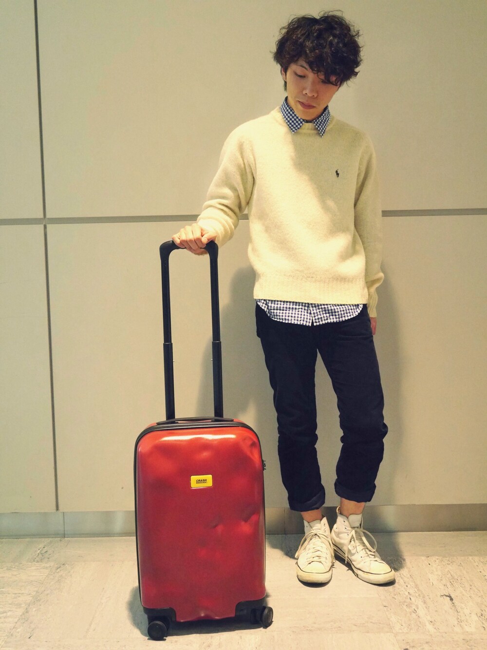 今日から12月ということで、テーマは冬のトラベルスタイル! あったかニットを動きやすいパンツとハイカットでコーディネートしてみました♪ 合わせるキャリーは、CRASH BAGGAGEというシリーズで、鮮やかなイタリアンカラーとユーモアたっぷりのデザインで一回持つとほかのキャリーが使えなくなる程かっこいいんです (//∇//)