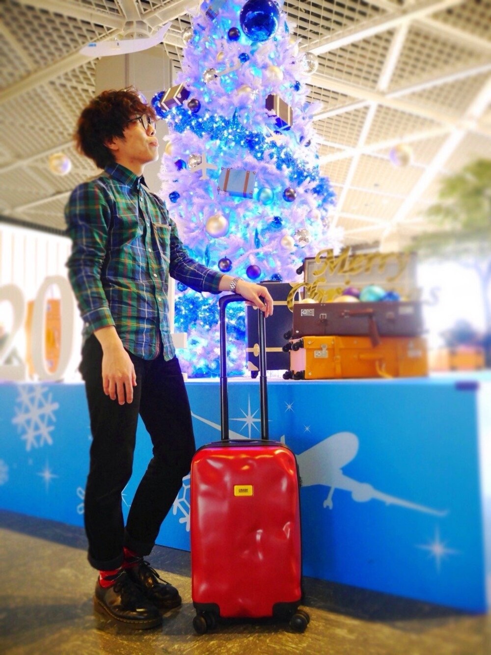 グリーンのシャツに小物で赤を使ってクリスマス感を出してみました! キャリーももちろん赤! バックのイルミネーションがとってもキレイですが、なんと成田空港なんです!最近はお買い物目的でいらっしゃる方も多いみたいですね♪ 年末年始もお店は開いてますので是非遊びにいらして下さい:-) Merry Christmas & Happy New Year♪