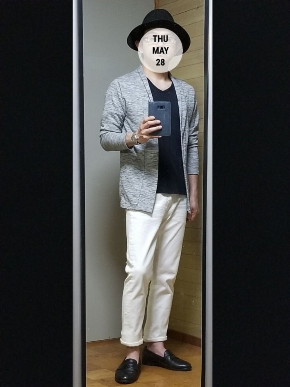 おはようございます🙋 白は膨張色なので、パンツはロールアップして足首見せるのが吉とのことで実践。 何かやり過ぎ感半端ないかも💦