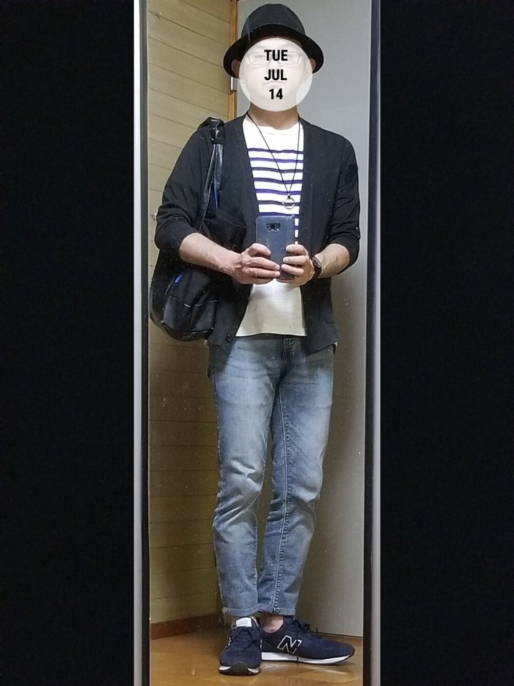 おはようございます🙋 昔からブラック×ブルー・ネイビーの組み合わせが好きでした😆 トートバッグ、腕時計も同じ色に合わせる徹底ぶり😅