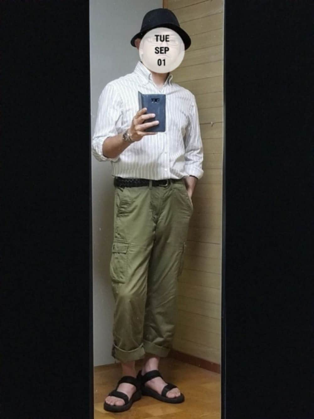 おはようございます🙋 uniさん、Tk.さん、昨日はフォルダインいただきありがとうございました🙋🙇 #タックイン フォローさせていただいているコッパさんのコーデがカッコよかったので、参考に、てか真似させていただきました💦 コッパさん、勝手に真似して申し訳ありません🙇 海釣りで日焼けして、腕がヒリヒリしております😖 しかも右手は手袋してたので、跡がくっきり😩