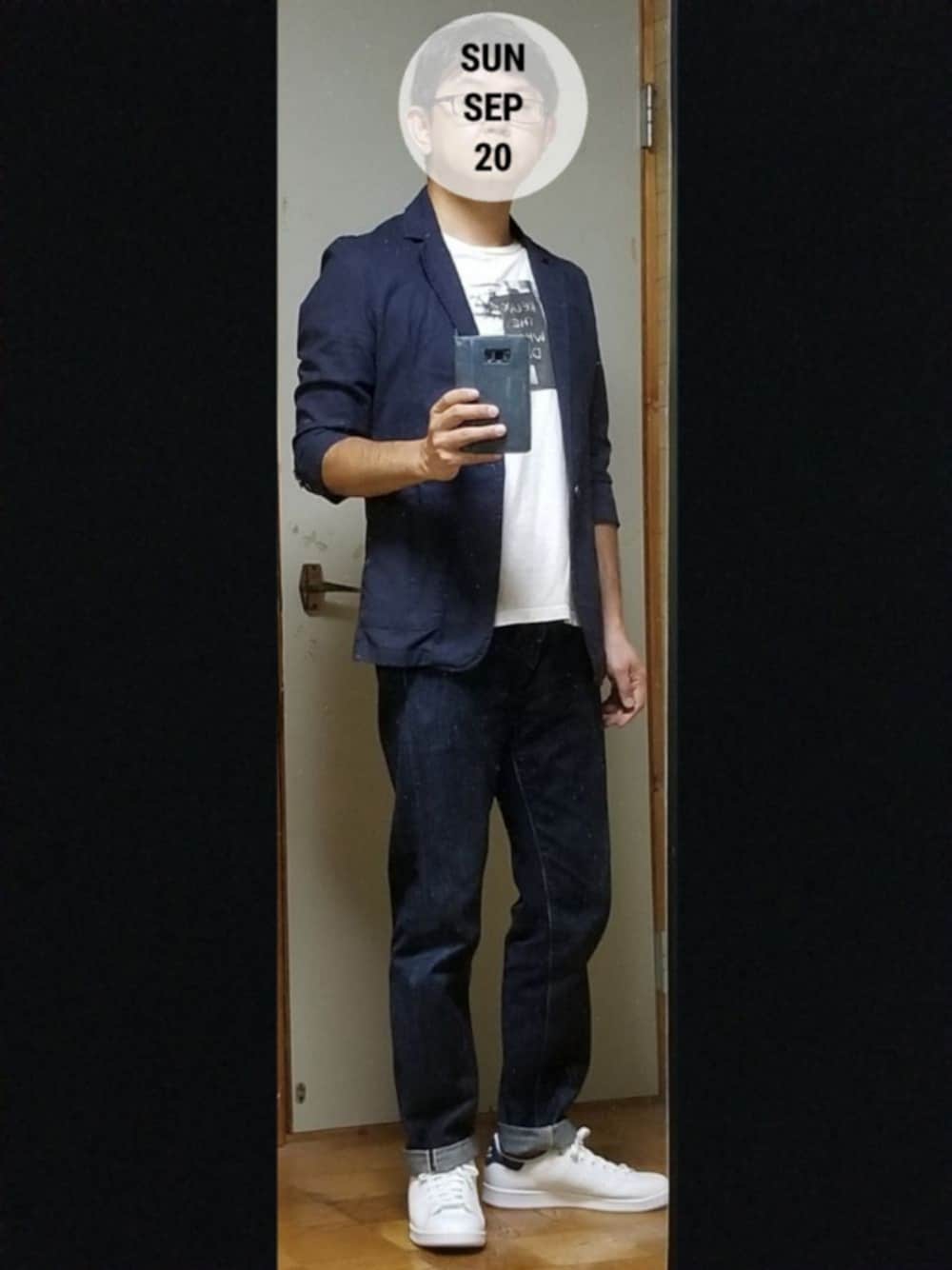 おはようございます🙋 uniさん、Tk.さん、昨日はフォルダインいただきありがとうございました🙌🙇 #白スニーカー 先月、待望のスタンスミスを購入。 バックステーは一番好きなネイビーに😄 コーデもスニーカーに合わせてネイビーとホワイトのみにこだわりました🙋