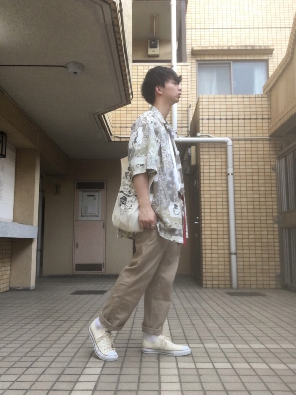 おはようございます!! 今日はシンプルから抜け出し、少し個性的なシャツを着てみました!! このシャツ、めっちゃめちゃでかいので中のTシャツはタックインしてバランスとってみました🙆🙆 しかし、今日は雨だということを忘れており、チノパン。。 濡れたらすぐにわかるやつやん!! 少し後悔してます😑 いつもいいね、お気に入り、コメントありがとうございます😊