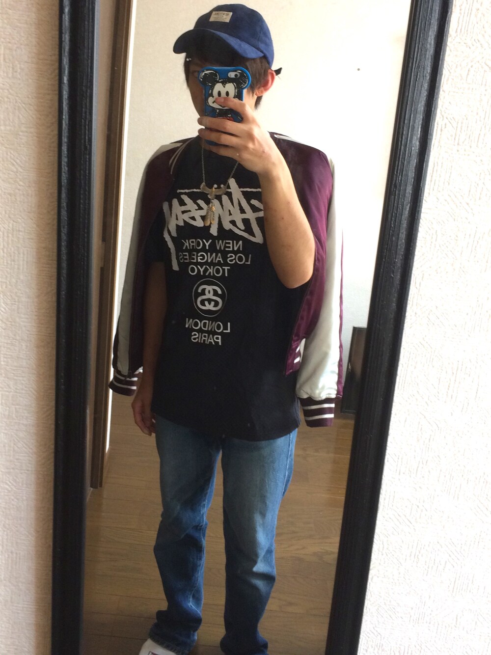 ストリートコーデです! AAAの西島隆弘さんに寄せたコーデです💋🐼 ストリートの定番であるキャップに合わせた赤いアウターは黒のSTUSSYのTシャツともよく合いますね✋️ サングラスを付けてもとてもcoolです😎 靴はスタンスミスがオススメです👌 いいね、セーブ、フォローよろしくお願いします!🙏