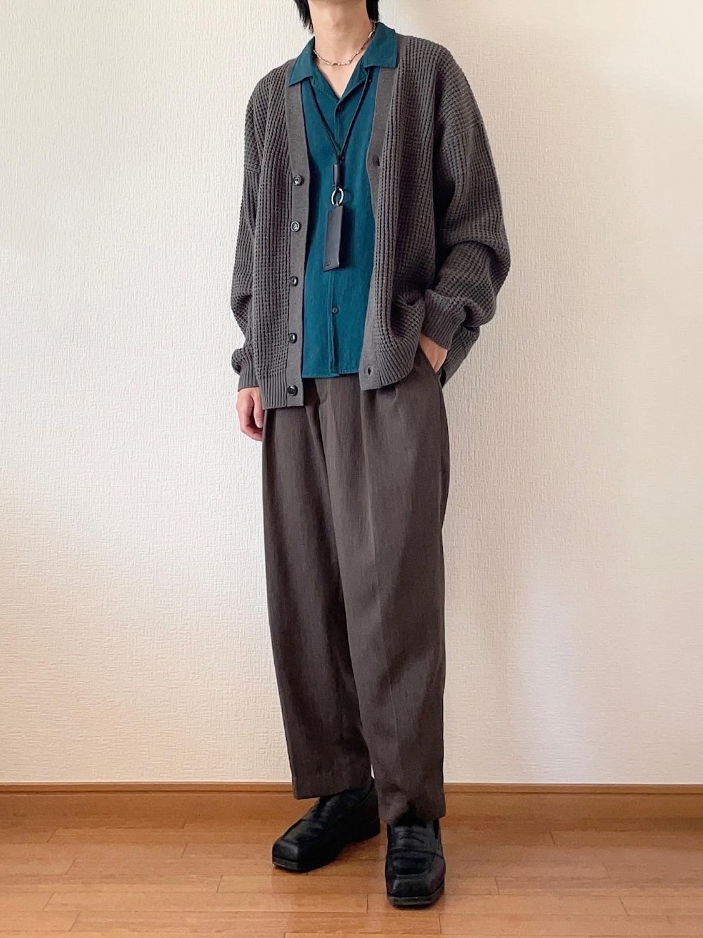 たかのカーディガン/ボレロ「ボリュームワッフルミックスニットルーズカーディガン 2022WINTER」を使ったコーディネート