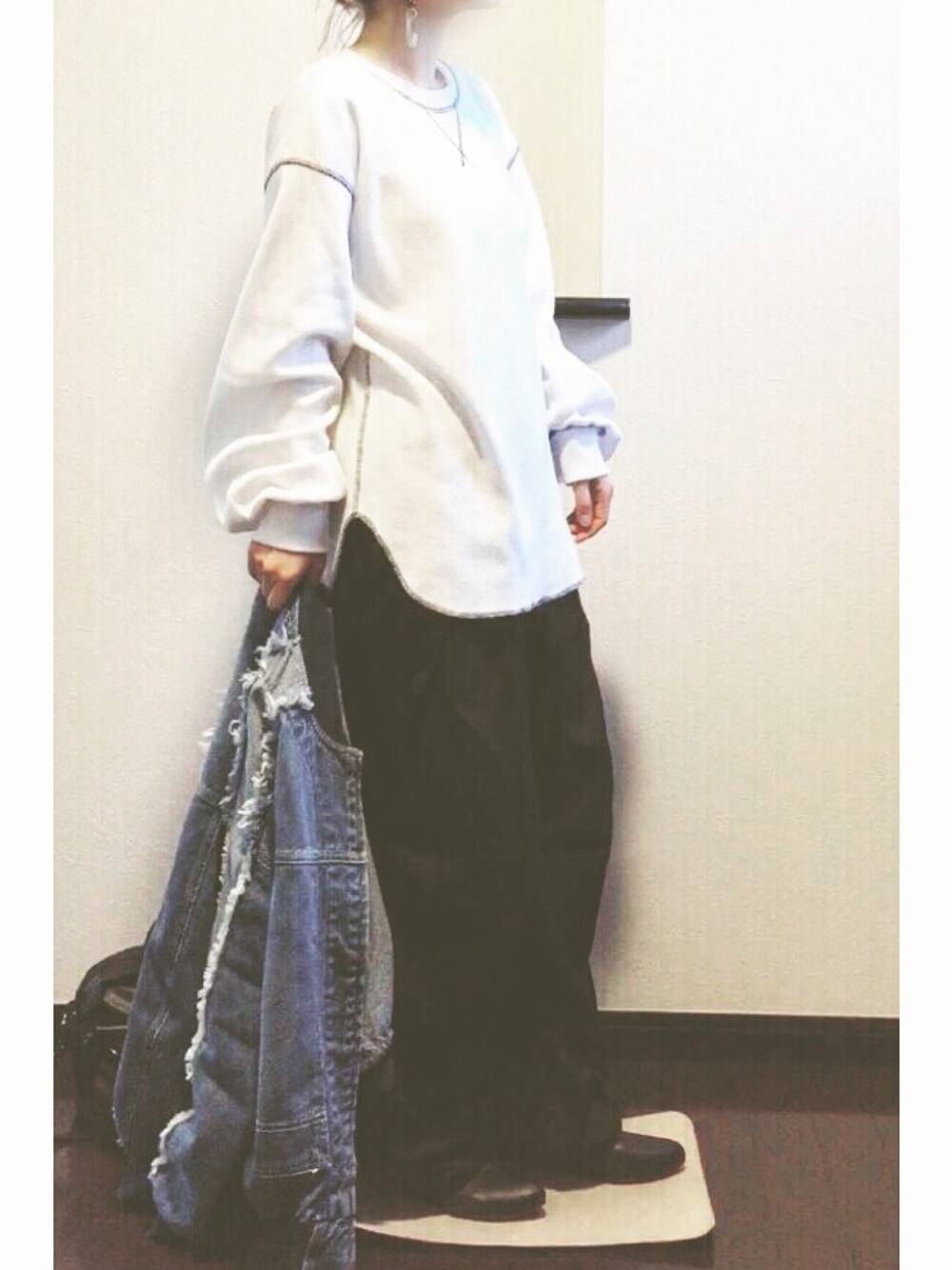 シルエットのユルさと ステッチにひとめぼれした ワッフルロンT ♡ 色違いもほしい✧*。