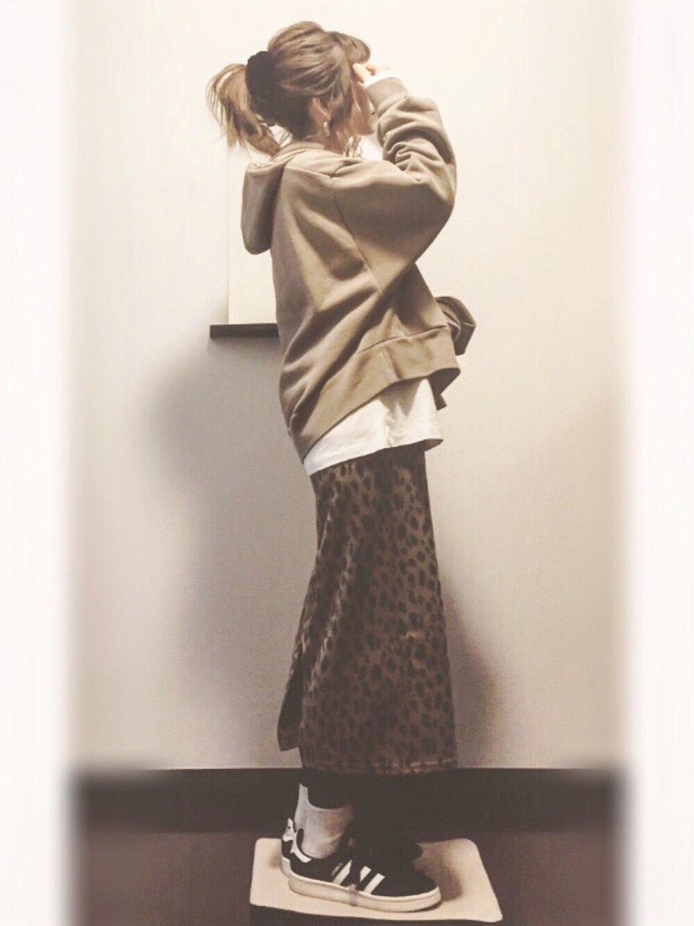 パーカーと合わせて レオパードスカートを カジュアルに✩︎⡱