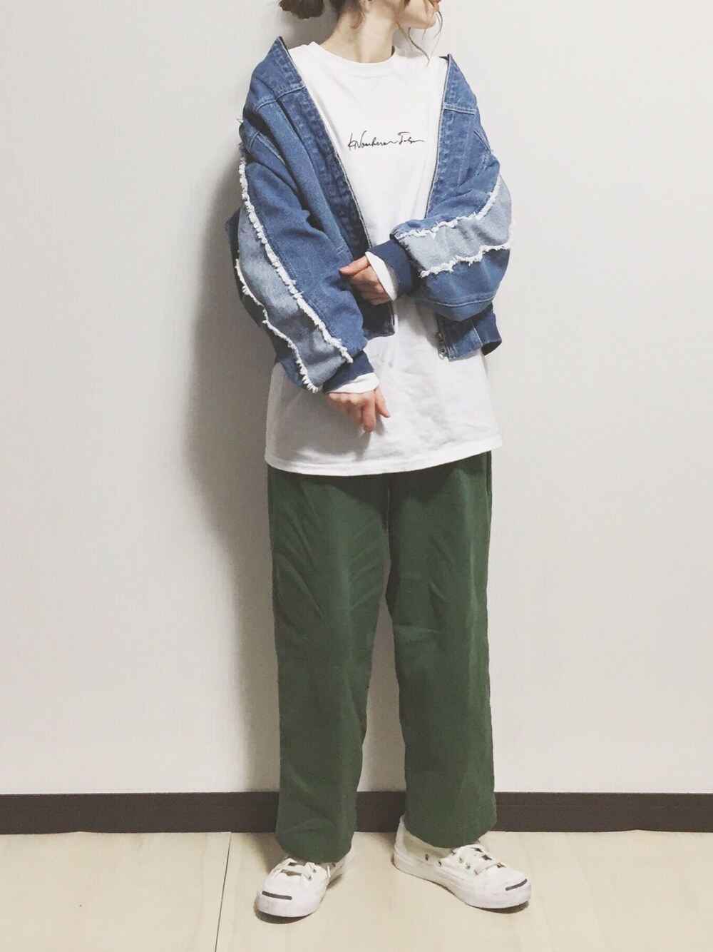 sHimA*kOのデニムジャケット「やわらかデニム ジップアップリブブルゾン」を使ったコーディネート