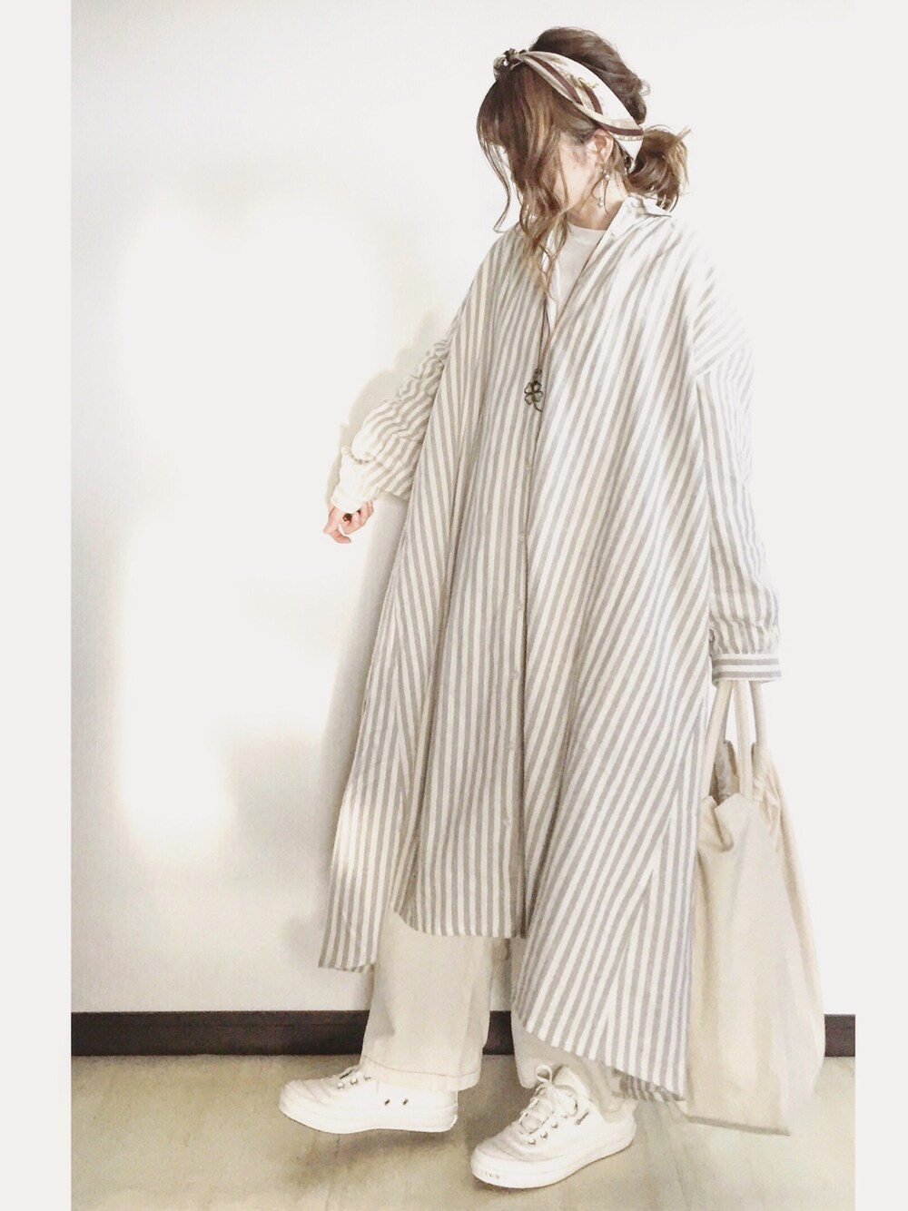 シャツワンピの ナチュラルカラーと ゆる感が可愛い₍ᐢ⸝⸝› ̫ ‹⸝⸝ᐢ₎♡