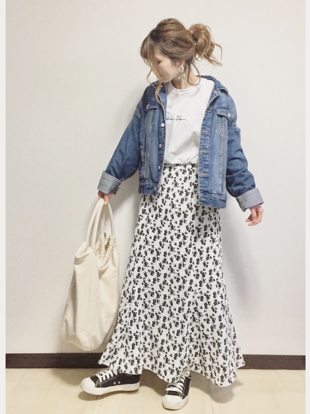 お気に入りの モノトーン花柄と ロゴT ♡