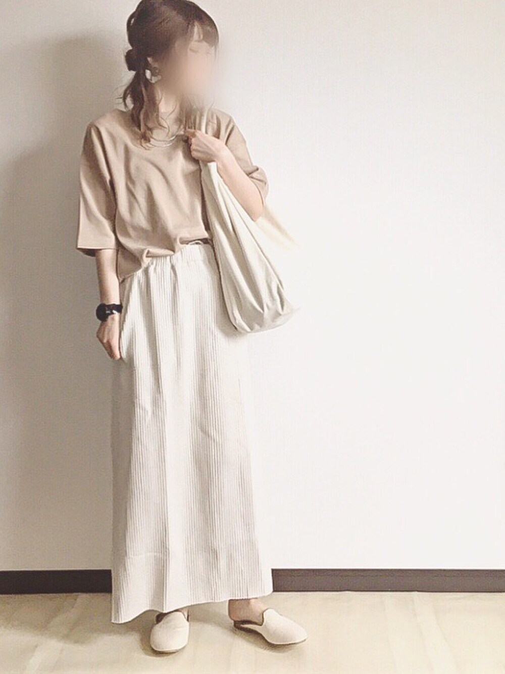 着心地の良いコットン素材と シルエットがお気に入りの ゆるTとワッフルスカート♡