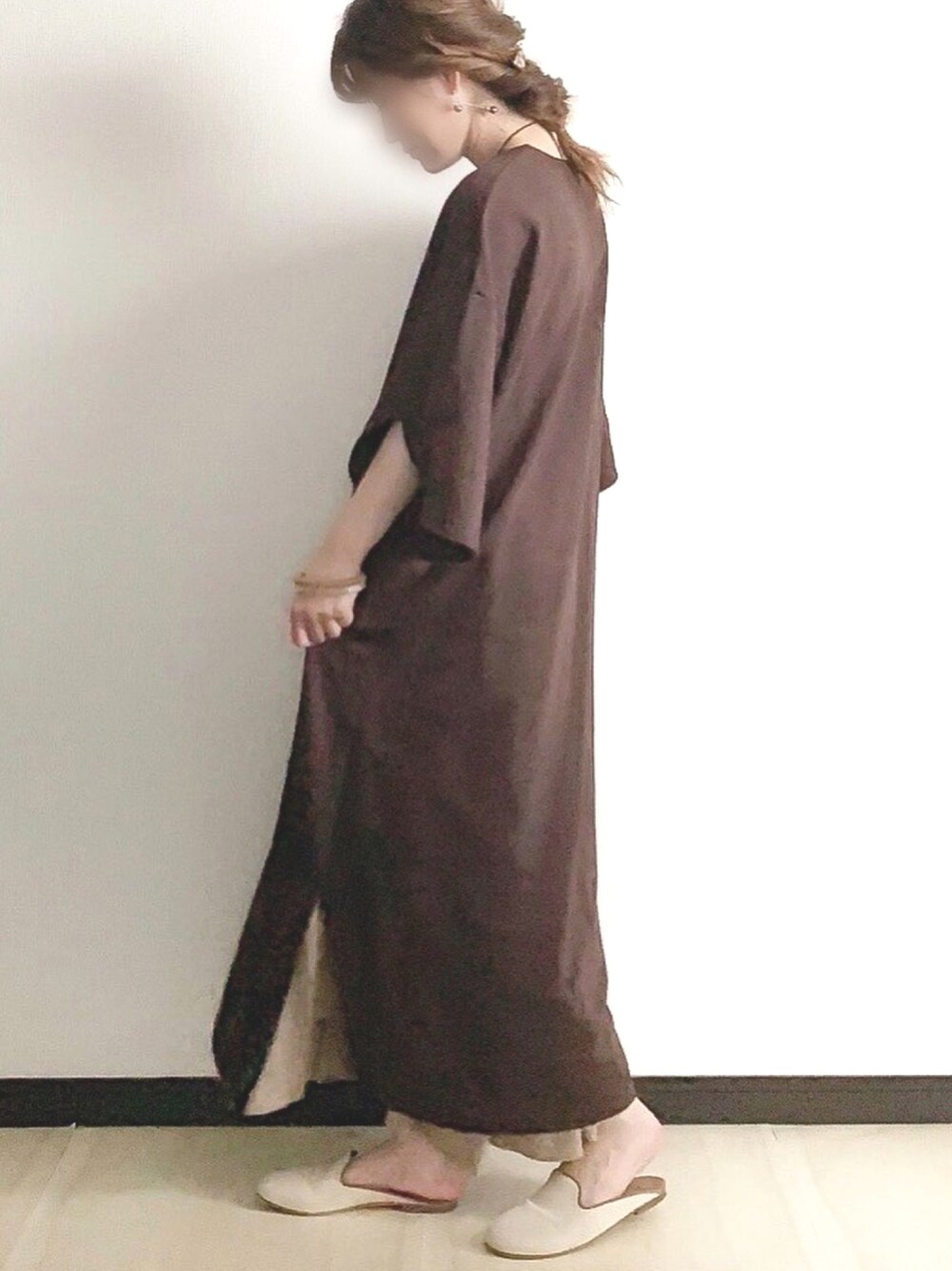 お袖が可愛いスウェットワンピ♡ リネンスカートを重ね着◎