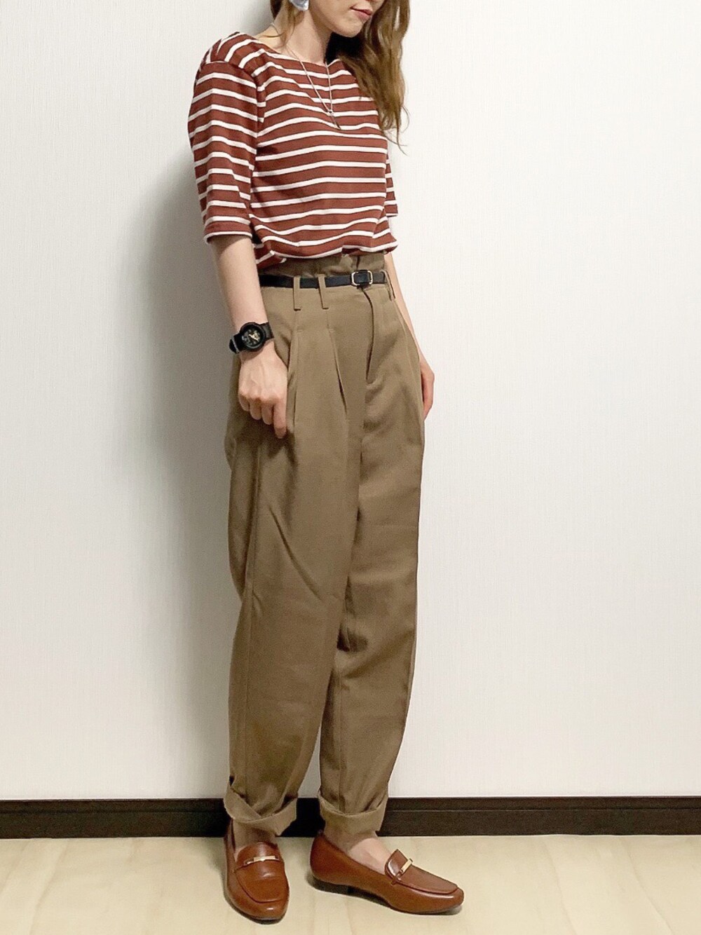 やっと涼しくなったと思ったら また夏日になったり…🙀 おかげでSALEで買った ブラウンの5分袖ボーダーが大活躍という 嬉しい誤算✧*。