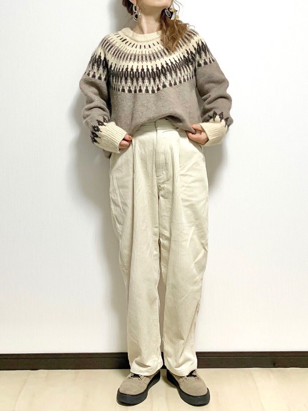 sHimA*kOのニット/セーター「ノルディックジャガード起毛ニット」を使ったコーディネート