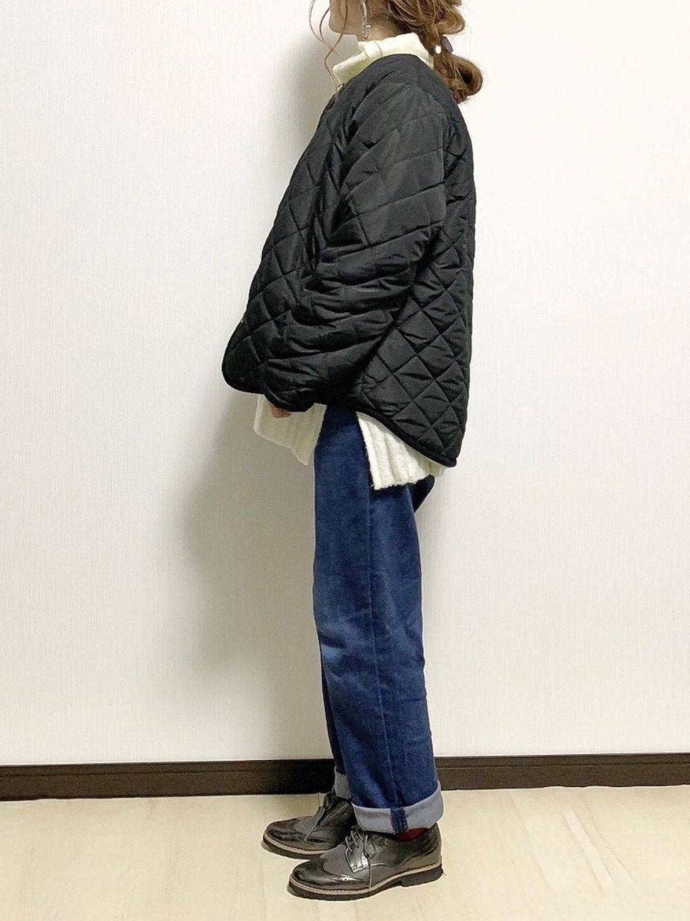 sHimA*kOのノーカラージャケット「ノーカラーキルトジャケット」を使ったコーディネート