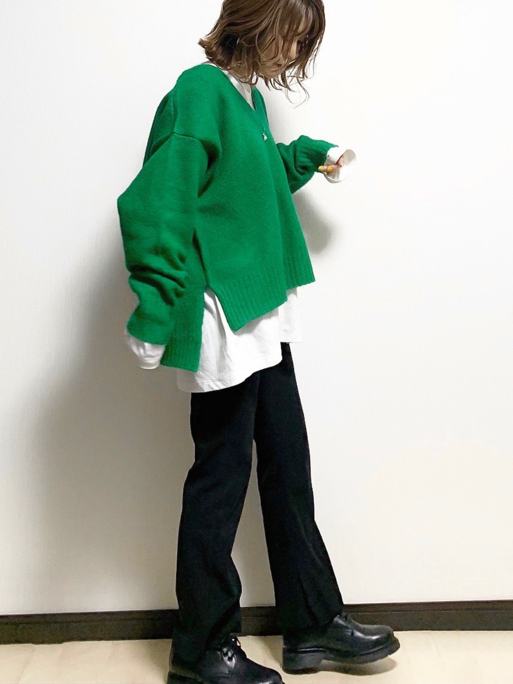 sHimA*kOのニット/セーター「Vネックワイドスリーブニットプルオーバー」を使ったコーディネート