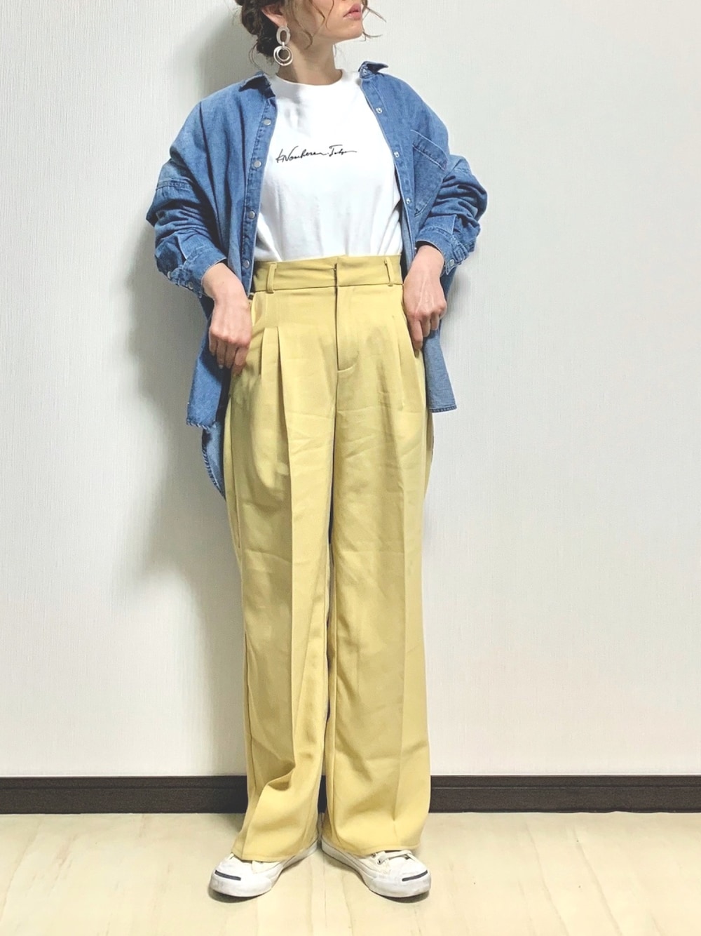 MOCAさんのイエローパンツ🍋 グリーンも人気で気になるけど 似合わなそう😂