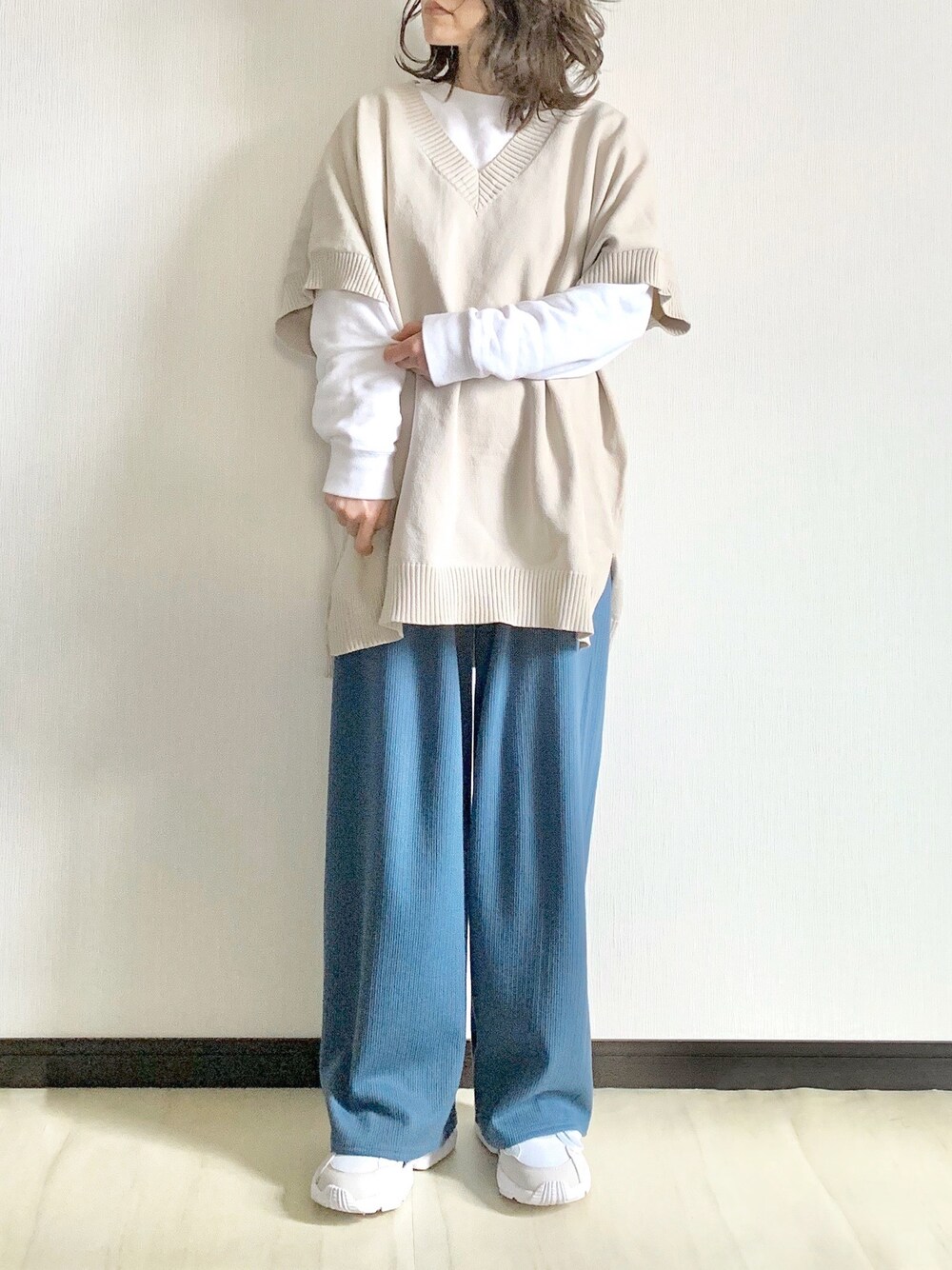 sHimA*kOのニット/セーター「ハーフスリーブニット」を使ったコーディネート