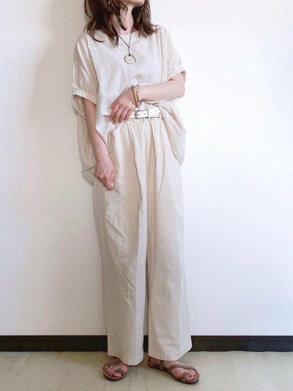 sHimA*kOのシャツ/ブラウス「リネン混袖口ギャザーブラウス」を使ったコーディネート