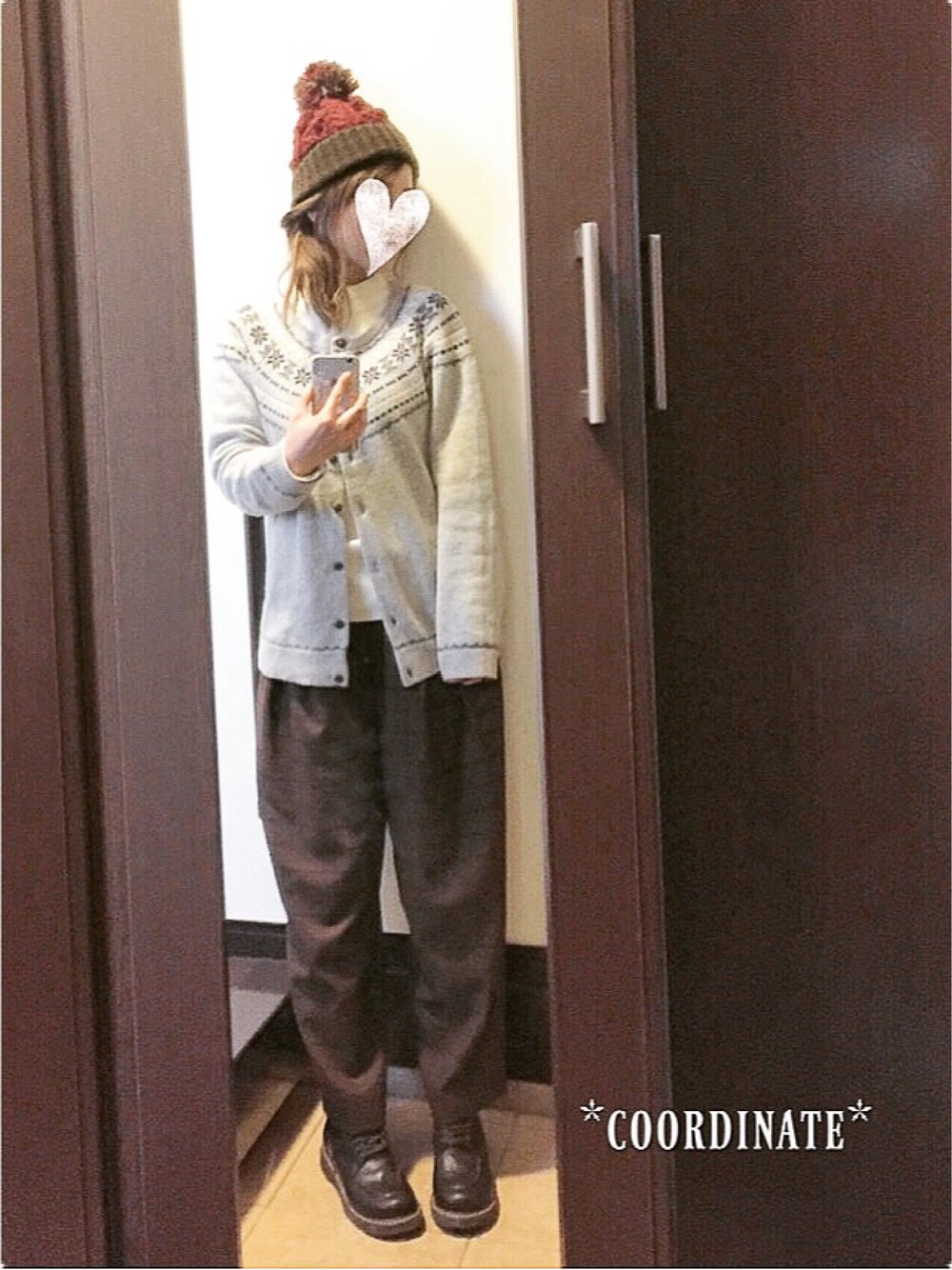 *:.。o○o。.:*。o○o。.:*。o○o。.:* *カーディガン:しまむら *ハイネックニット:WEGO *パンツ:GU *靴:Rinclover *ニット帽:studioclip *:.。o○o。.:*。o○o。.:*。o○o。.:* studioclipのニット帽は ボルドー×ブラウンの配色が お気に入り(*´˘`*)♡ ✏--------------------.