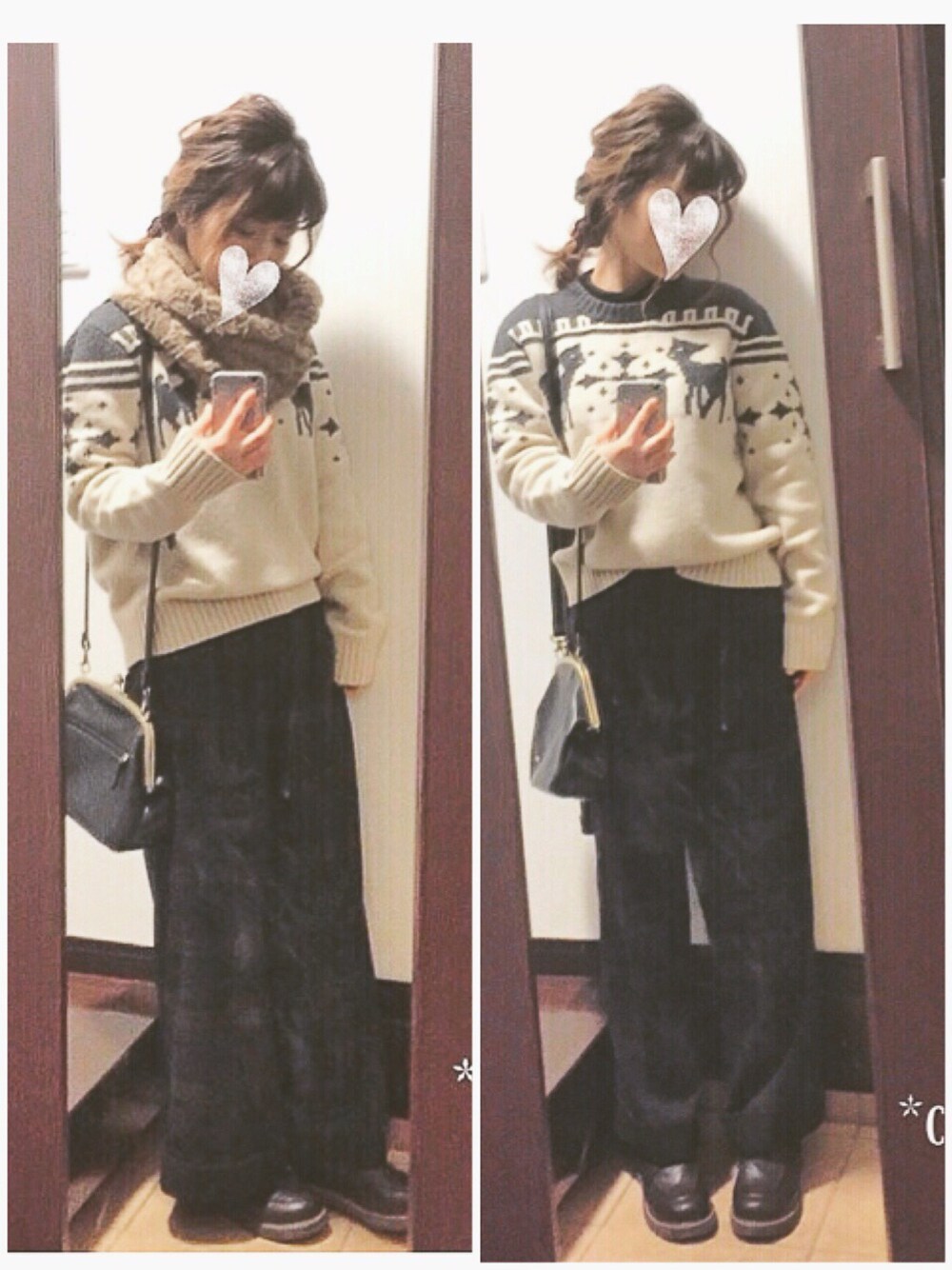 *coordinate* ・ニット:UNIQLO ・パンツ:しまむら ・靴:Rinclover ・バッグ:studioclip ・スヌード:イーザッカマニア 店頭で見つけて一目惚れした バンビ柄ニット♡ 値下げ価格1,990円♪ レトロな風合いがかわいい(*´˘`*)♡ ✏--------------------.