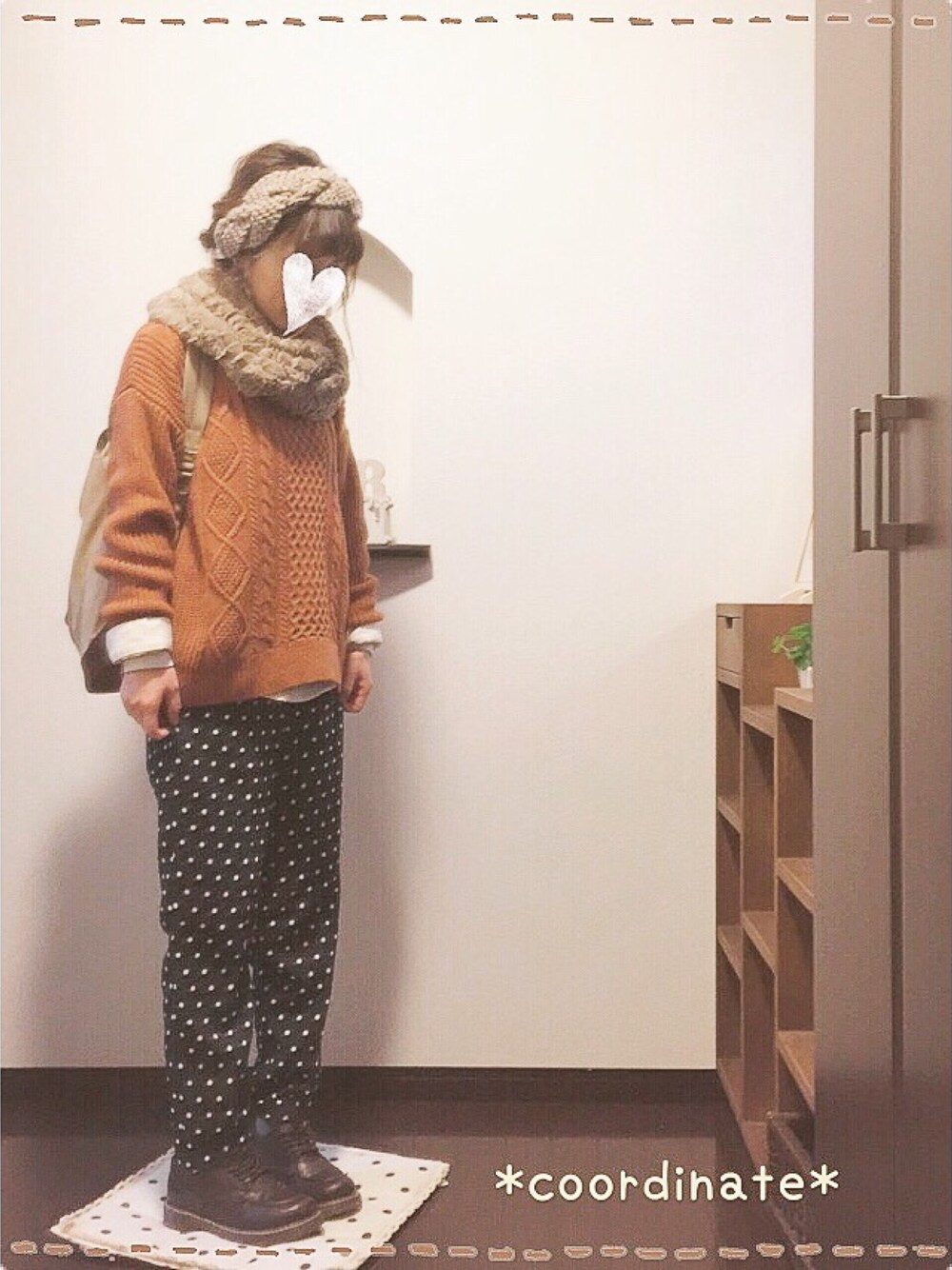 *coordinate* ・セーター:しまむら ・パンツ:AG by aquagirl ・シャツ:SM2 ・スヌード:イーザッカマニア ・靴:Rin clover ・ヘアバンド:studioCLIP ・リュック:SM2 お気に入りのレンガ色ニットに 大好きなドット柄を合わせてみました⑅◡̈* SM2のシャツとリュックは 新しく仲間入りしたお気に入りたち♡ ✏--------------------.