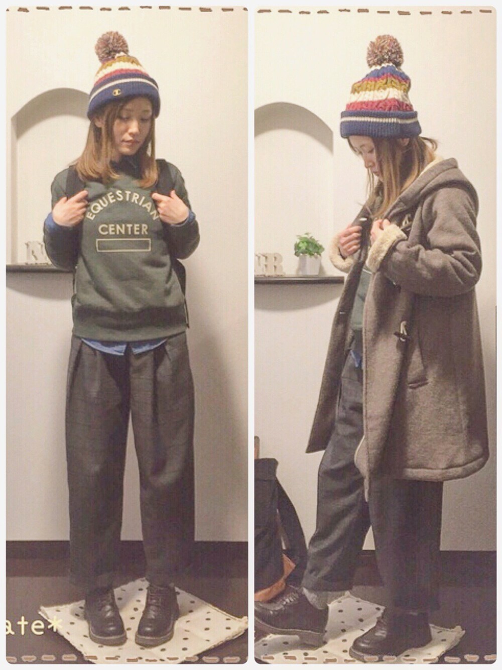 *coordinate* ・スウェット:GU ・デニムシャツ:UNIQLO ・パンツ:GU ・ニット帽:しまむら ・靴:Rin clover ・コート:samansa mos2 ✏--------------------.