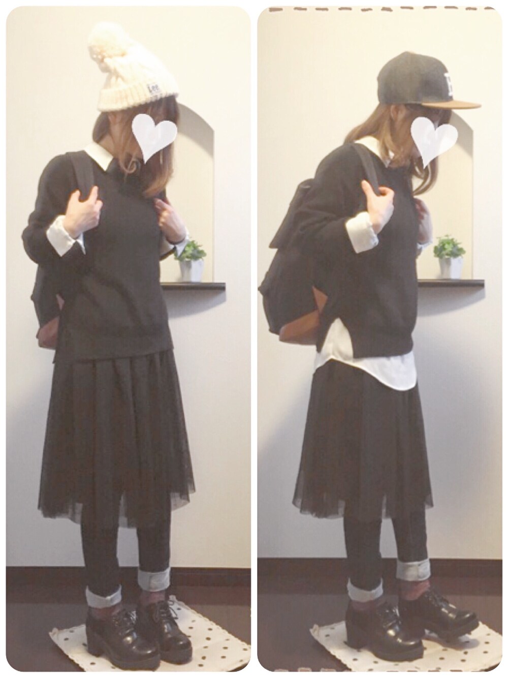 *coordinate* ・ニット:しまむら ・シャツ:ecruefil ・スカート:salus ・デニム:DEPARTMENT ・靴:YOSUKE ・リュック:楽天 ・帽子:しまむら 前回のコーデが ホワイトサロペット主役だったので 今回は黒が主役のコーデにしてみました(*Ü*) ✏--------------------.