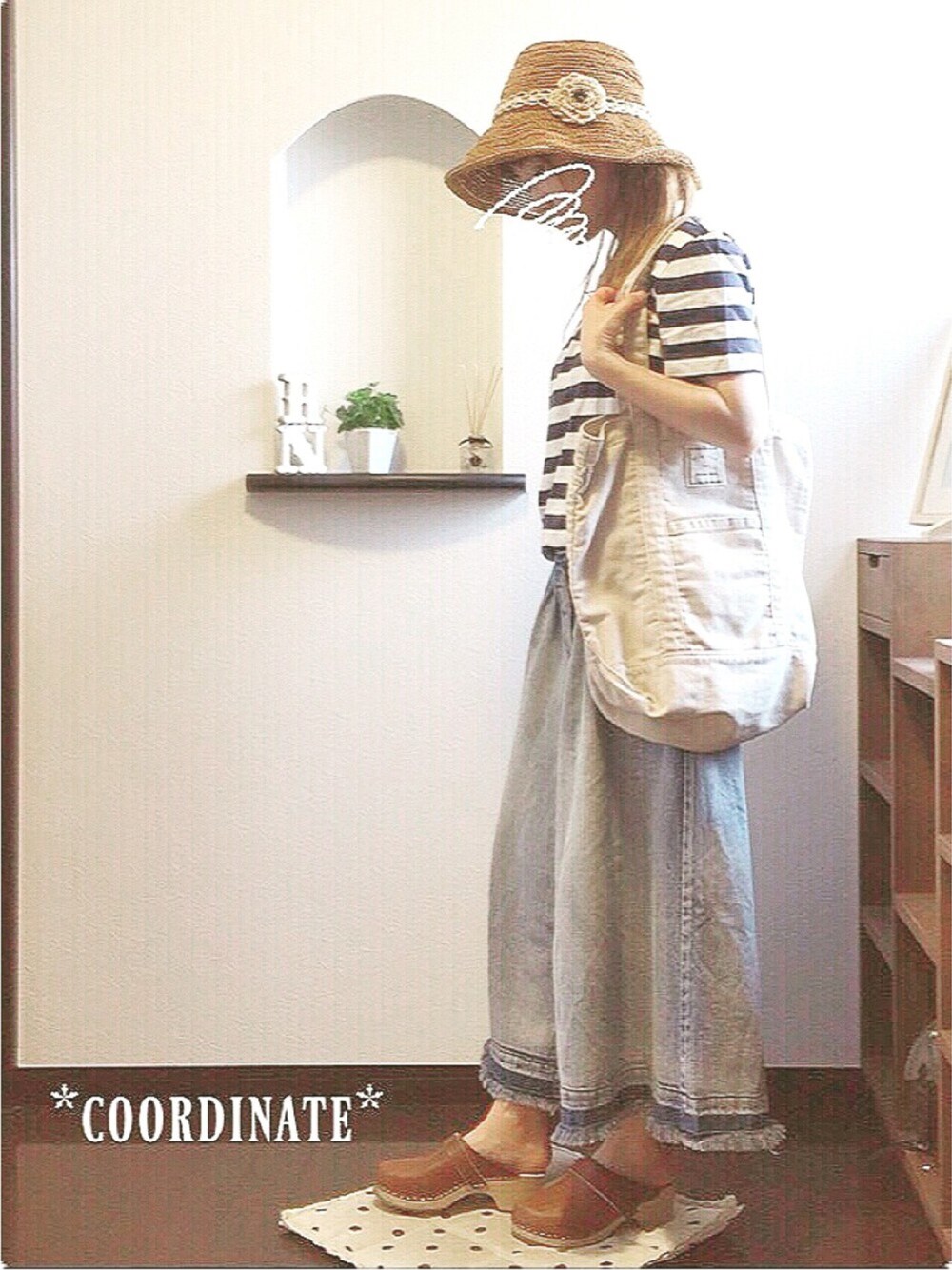 *coordinate* ・帽子:CA4LA ・Tシャツ:無印良品 ・ワイドパンツ:しまむら ・サボ:SWEDISH CLOGS ・トートバッグ:samansa mos2 CA4LAのハットは ペーパー素材のお花モチーフに一目惚れ *´꒳`* アウトレット店で30%OFFでした❀ ✏--------------------.