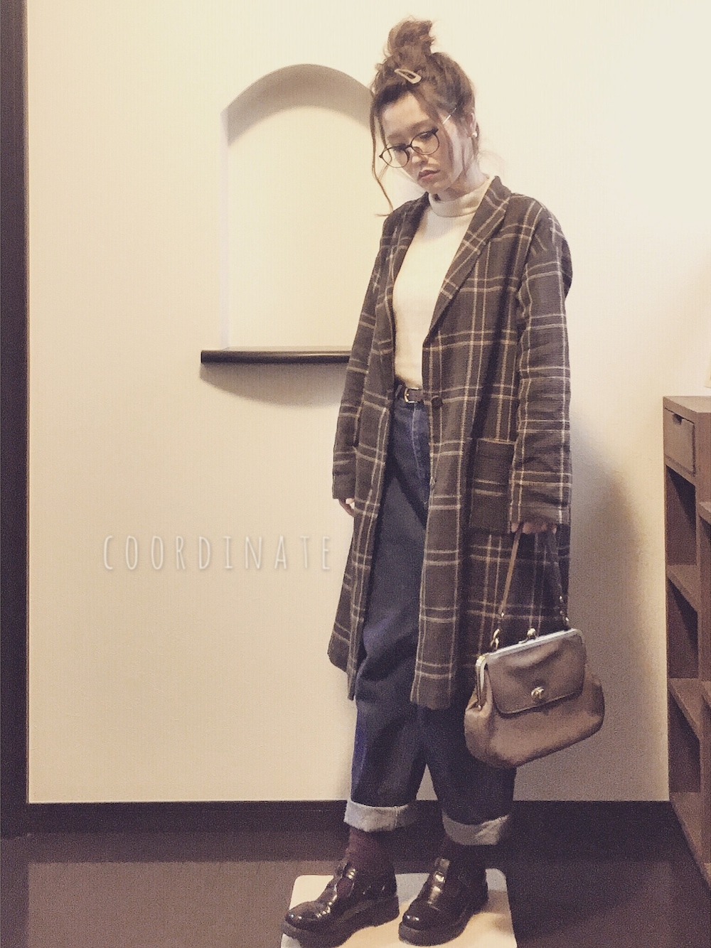 *coordinate* ・チェック柄ガウン:samansamos2 ・タートルニット:samansamos2 ・ジーンズ:no brand ・バッグ:studioCLIP ・ソックス:tutuanna ・靴:ehkasopo ちょっぴりレトロっぽく◡̈⃝︎⋆︎* ✎ ----*----*----*----*