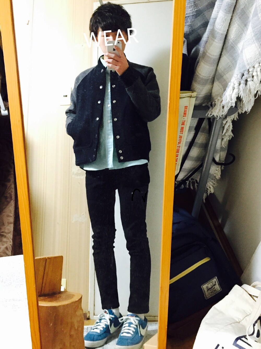 りゅう。のスタジャン「◎BEAMS LIGHTS / 2トーンアワードジャケット」を使ったコーディネート