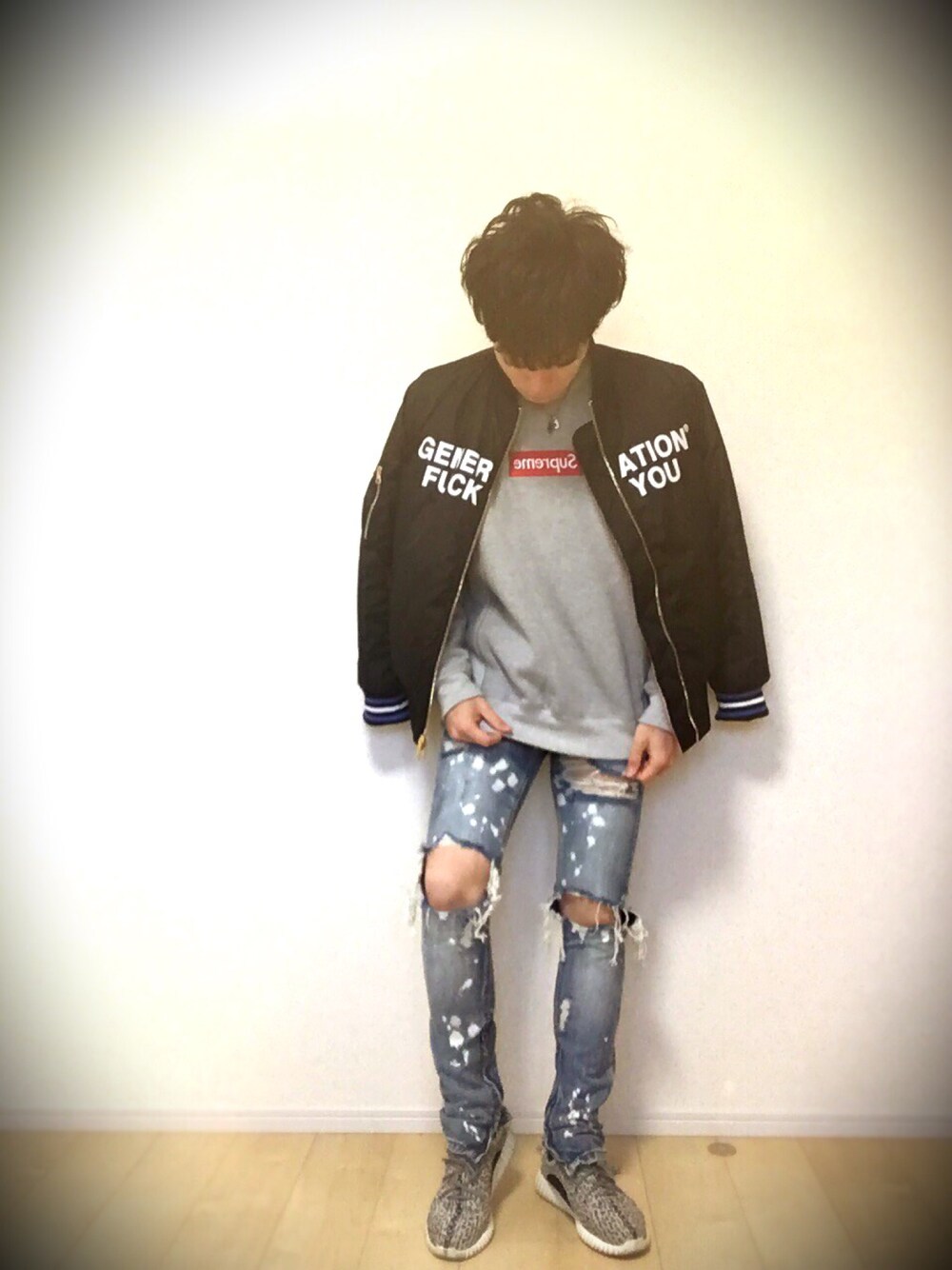 明けましておめでとうございます(^^) マイペースに更新します☆ 新年一発目は大好きなシュプリーム‼︎デニムはmnmlのデニム‼︎