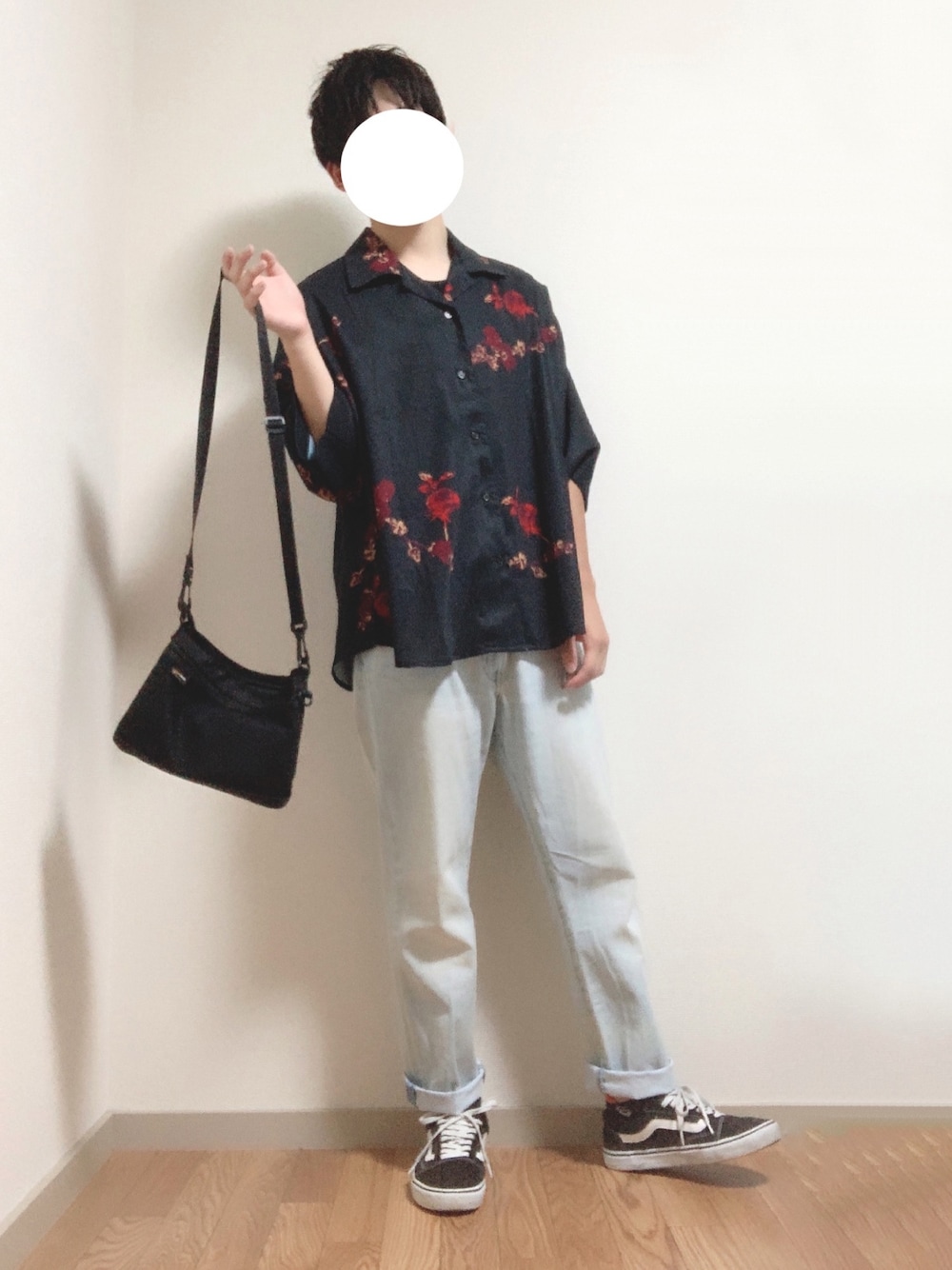 りゅうのシャツ/ブラウス「ファッションインフルエンサー ユウト × INTER FACTORY ローズフラワーオープンカラービッグシャツ」を使ったコーディネート