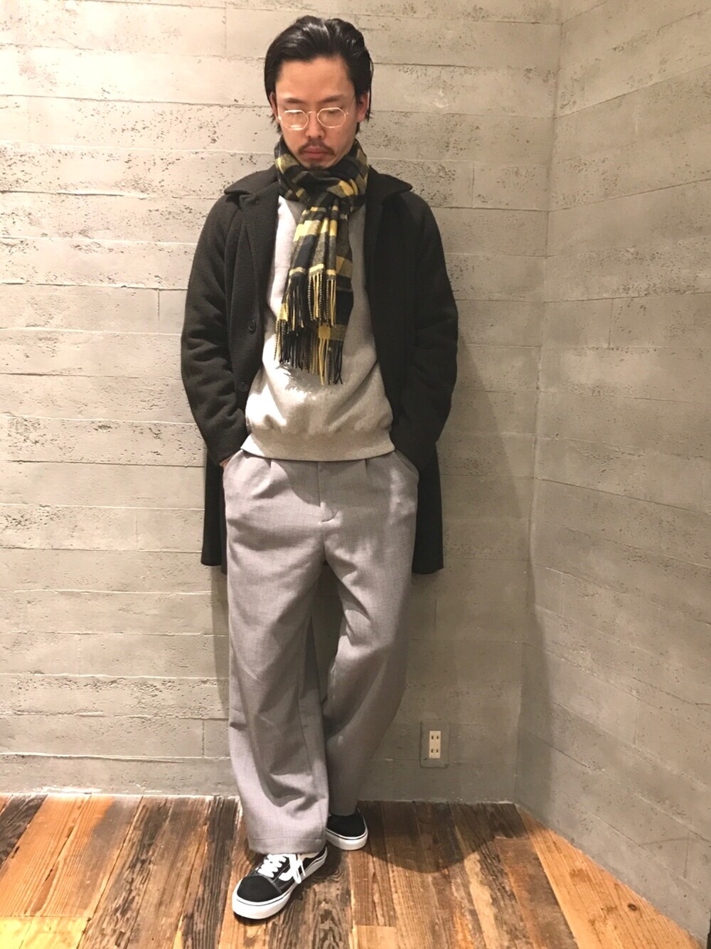 流郷幸嗣のマフラー「【カシミヤブレンド】ブロックチェックマフラー(HARE)」を使ったコーディネート