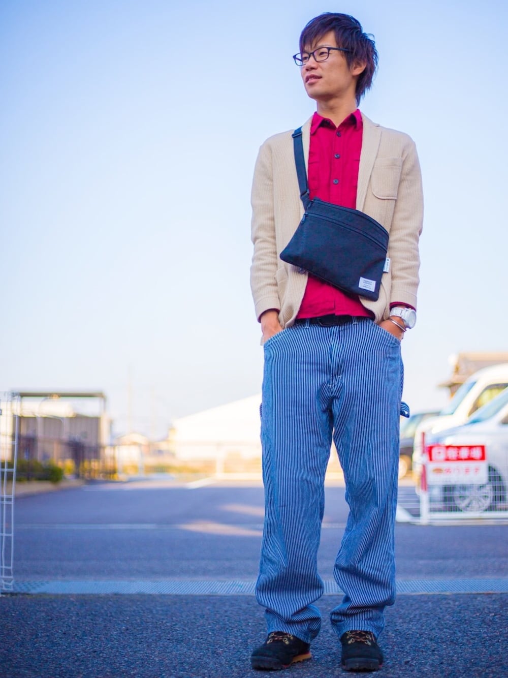 こんにちは! 今回はおじさんくさいベージュのニットジャケットをカジュアルに着てみる! ボルドーのシャツにヒッコリー、サコッシュも使ったりなんかして、なんかよく分からない感じに仕上がりましたね🤔ww 髪をパーマ&カラーで冬仕様にしました、一気に老け込んだ気がします。笑 今週末はいよいよ東京に乗り込みます‼︎ 撮影希望者はインスタまで😜📸 笑