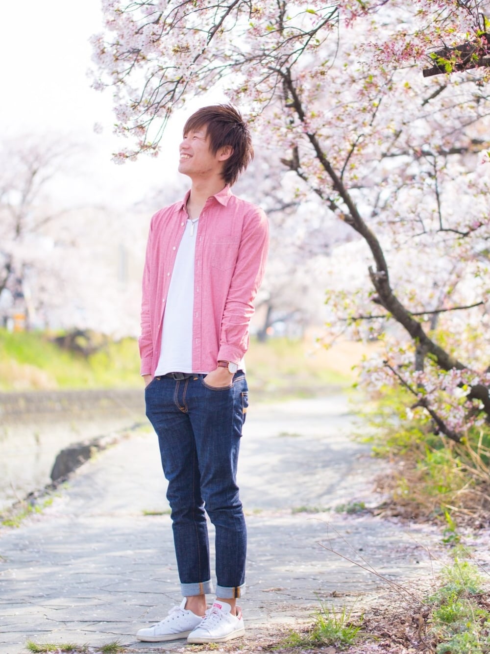 こんにちは! ちょっと出遅れましたがお花見に行った時のコーデを! 桜に擬態してやろうと白のカットにピンクのシャツをシンプルに🌸 この帰りに食べた日本一コッテリなラーメンで悲劇が……笑 今日明日はまた冷え込むみたいですね💦 皆さん体調にはお気をつけて😣