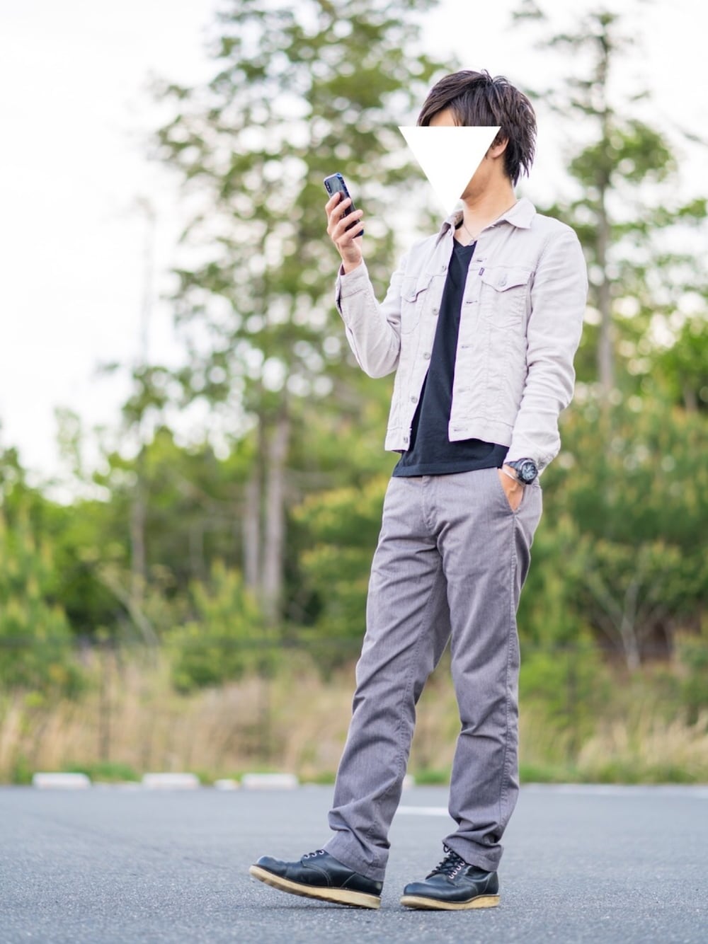こんにちは! 風強いし気温低いし寒い😵 もう秋かと思ったww グレーのリネン素材のジャケットは春秋に大活躍、モノトーンでシックに合わせても良し、原色と合わす中間色にしても良し、結構便利なやつです😎 最近撮った写真を確認すると目が絶望感に溢れた目つきしてますww なんでやろ😑