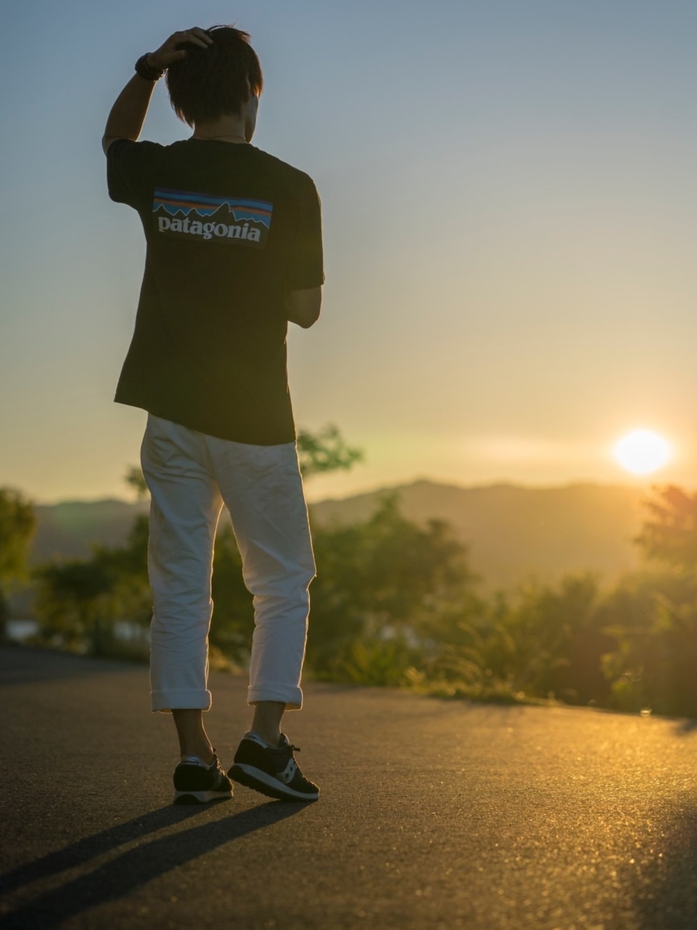 夏服買いに行った帰りに良い感じのサンセット🌇 『映える写真撮れんじゃね?』 と慌ててカメラをセット📷 爆風で髪がバサバサなるのを手で抑えてますwww なかなか良い写真でしよ😏❓
