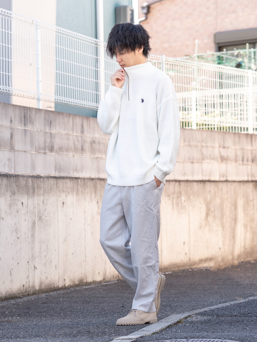 Ryu--taのニット/セーター「∴WEGO/U.S. POLO ASSN.別注畔編みハーフZIPニット【WEB限定】」を使ったコーディネート