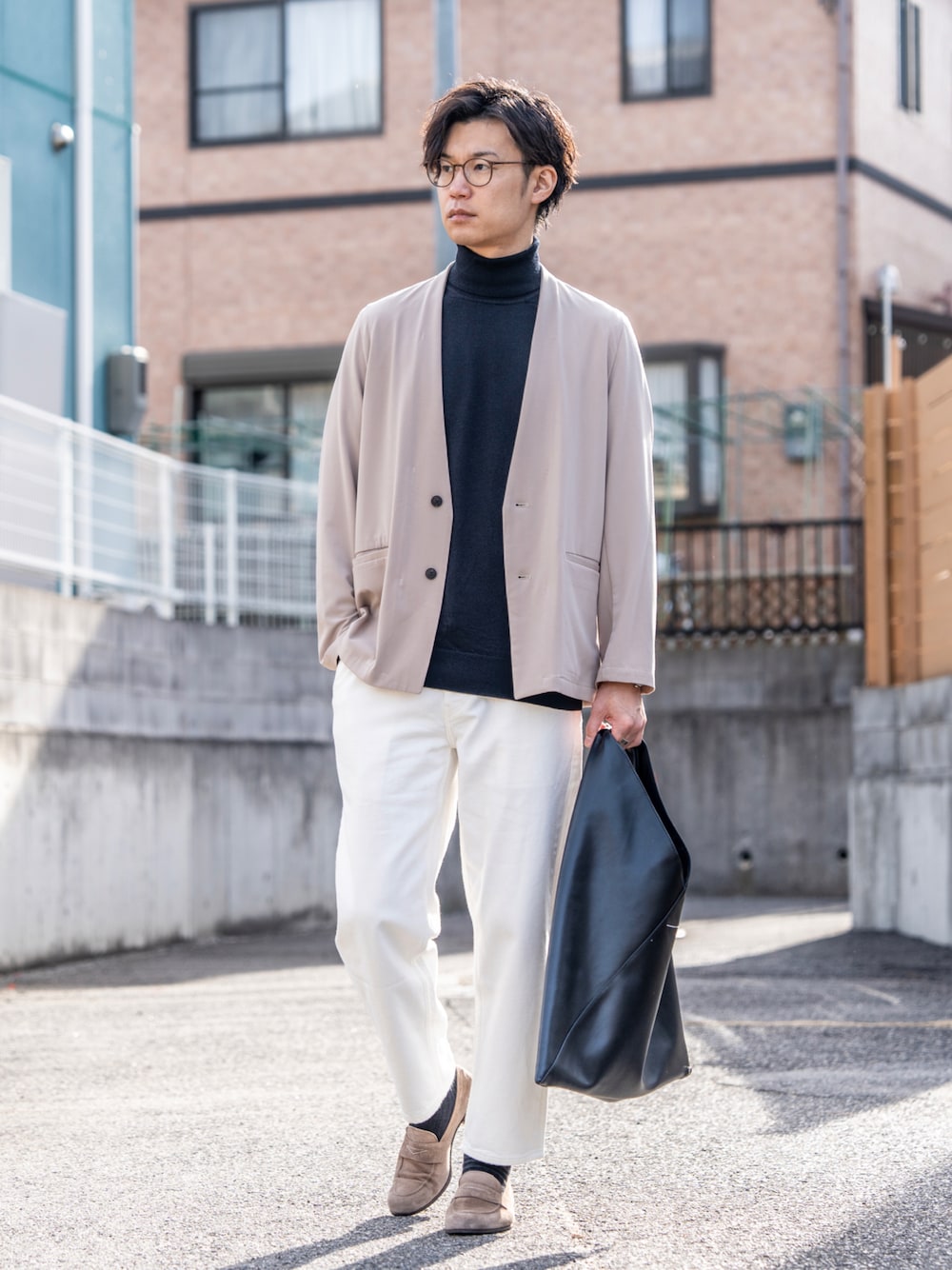 春らしいカラーリングのノーカラージャケットを使った爽やかコーデ 淡いカラーリングを黒のタートルネックとバッグ、ソックスでキュっと締めて 柔らかさの中にも出来る大人の雰囲気を。 いつもいいねやフォルダイン等ありがとうございます。 ▼▲▼▲▼▲▼▲▼▲▼▲▼▲▼▲▼▲▼▲▼▲▼▲▼ Instagramで別カットや詳細なアイテム紹介を しています📱 ID⇒rt.wear プロフにリンクありますので 何でも気軽に声かけてください。 ▼▲▼▲▼▲▼▲▼▲▼▲▼▲▼▲▼▲▼▲▼▲▼▲▼