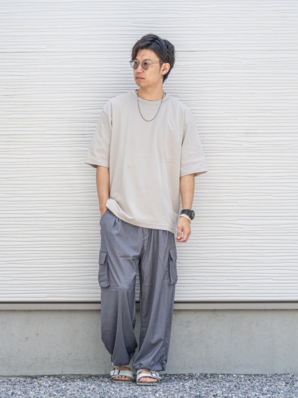落ち感のあるカーゴパンツにUNIQLOのエアリズムコットンオーバーTでゆるりと