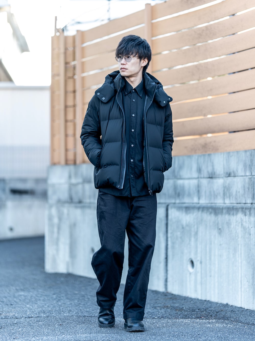 高級ダウンジャケットで作る大人のオールブラックカジュアル